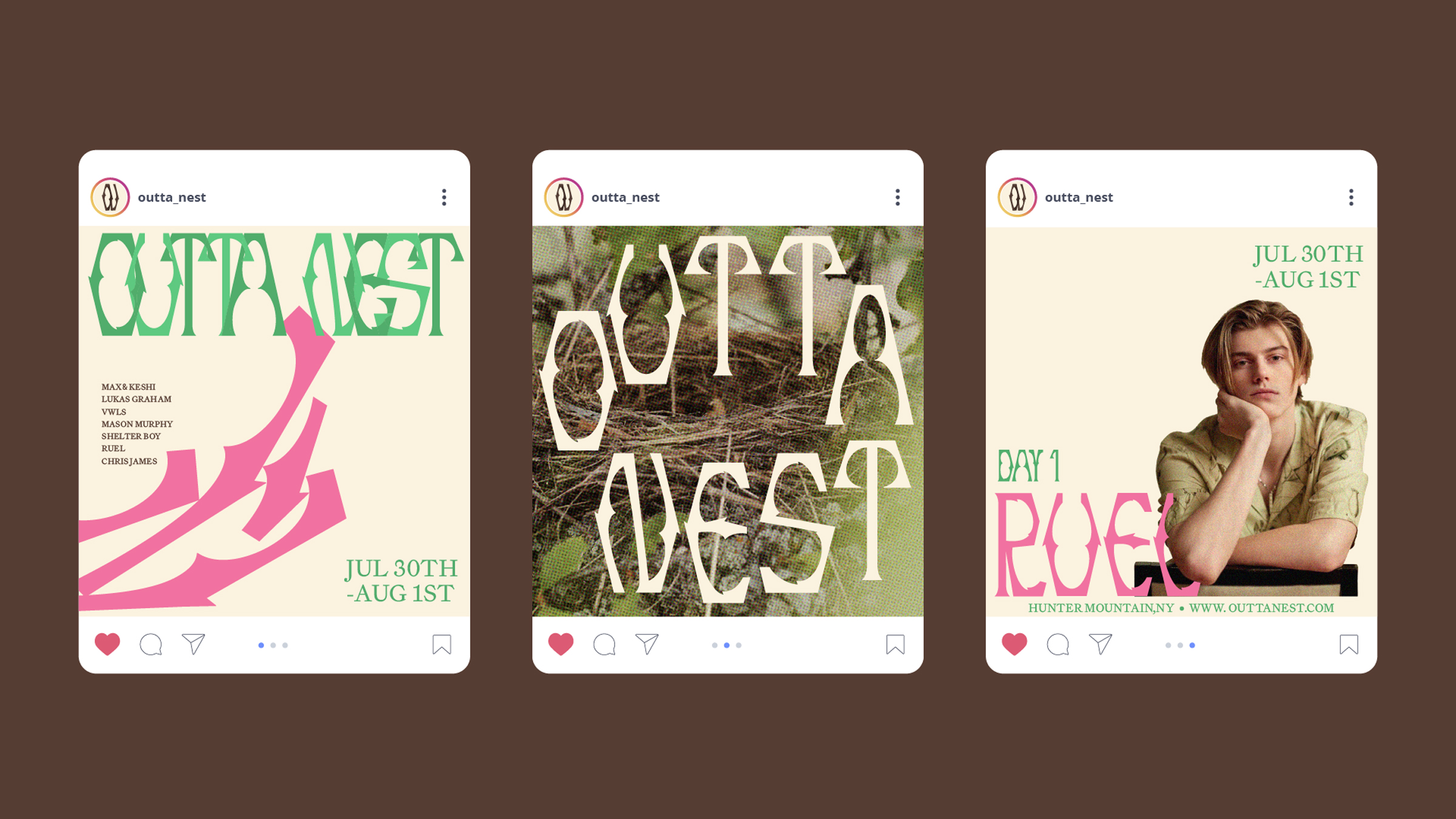 The Outta Nest Music Festival provides a unique experience for those who feel they have left the nest with its calming and healing music surrounded by hills. I created the festival to bring comfort and warmth to the audience. Inspired by the story of baby birds leaving the nest inevitably, the festival creates a safe "nest" for young people who can relate to this experience.