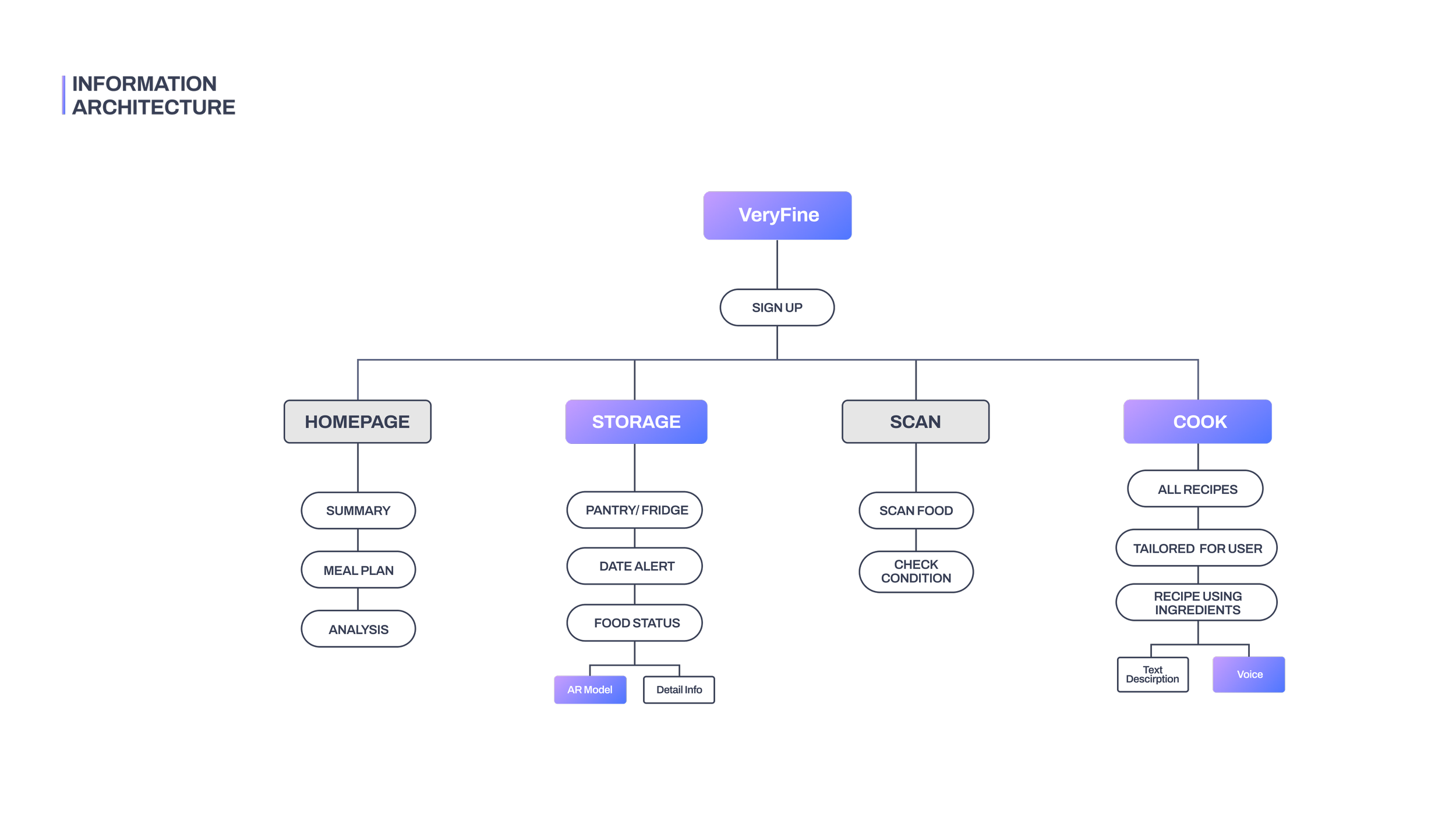 To reduce food waste caused by confusing food conditions and forgetting the expiration date, the app "Veryfine" notifies users of approaching expiration dates with a tangible visual prediction model an suggests ways to use foods before they go bad.